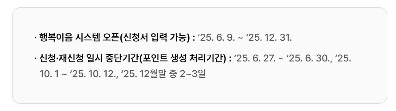 25년부터는 지원금액이 동·하절기 구분없이 사용기간 내 자유롭게 사용 가능하므로, 하절기에 바우처를 사용하지않고, 동절기에 몰아서 사용하기를 희망하는 경우에는 하절기 요금 미차감 신청이 필요한 점 참고해주세요.