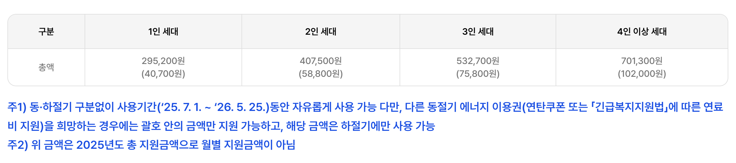 '긴극복지지원법'에 따라 동절기 연료비(25년 10월~)를 지원받은 자 혹은 세대.